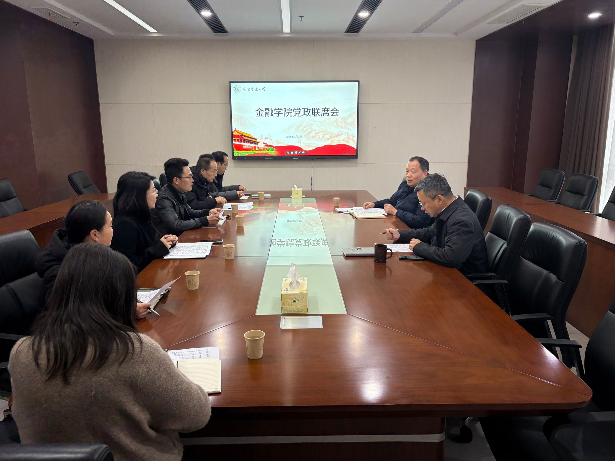3月2日下午,金融学院召开2026年学院领导班子务虚会。会议紧扣学院“十五五”发展规划,聚焦2026年学院目标管理考核指标,围绕党建工作、人才培养、科学研究、学科发展、社会服务、国际交流与合作等方面,展开深入研讨与系统谋划,为学院高质量发展明确方向、凝聚合力。学院全体领导班子成员、院党委委员参加会议。