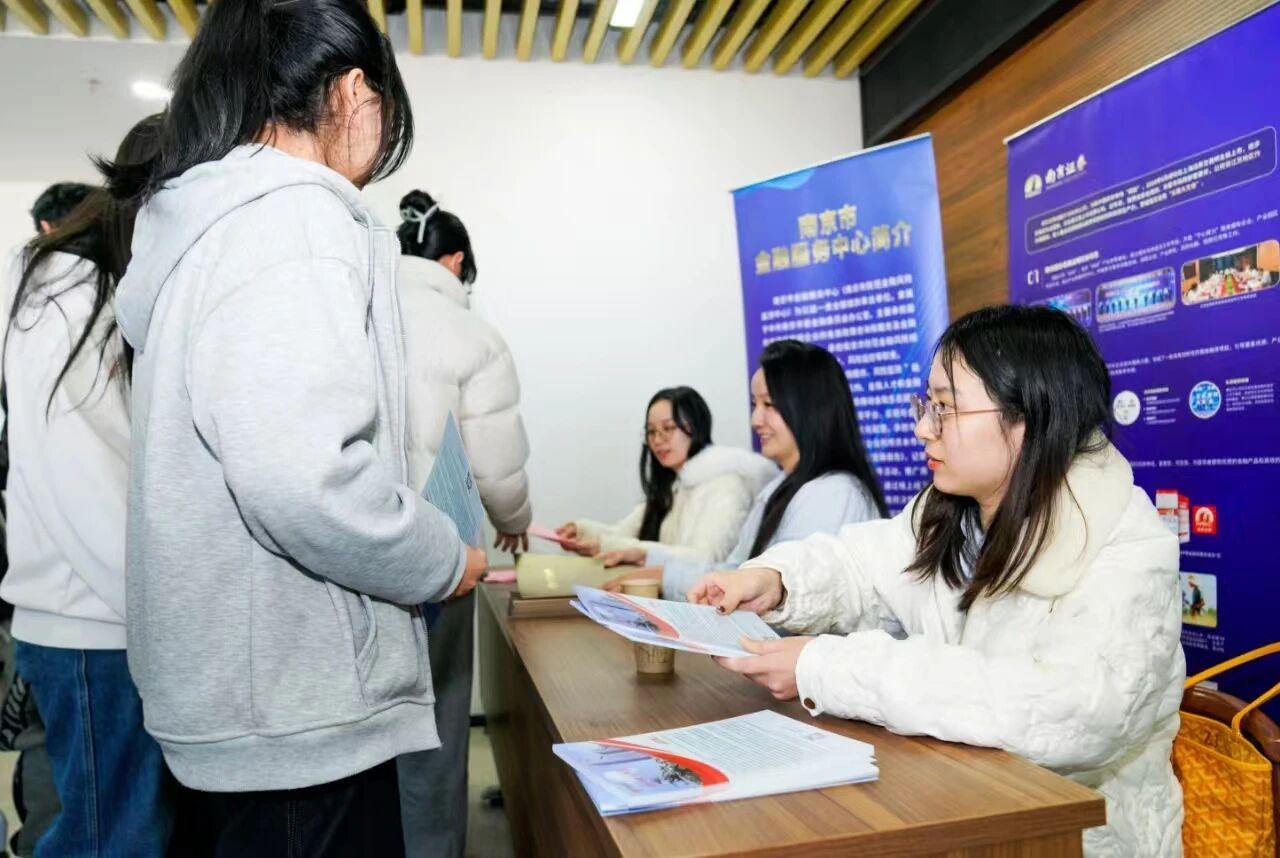 授课结束后,现场进入提问互动环节,同学们就绿色金融产品投资、未来就业方向与可能性等话题踊跃提问,两位讲师结合自身一线经验给予细致解答,让同学们对金融市场有了进一步的了解。会场后方还设置了宣传展台,便于同学们进一步了解南京证券与南京银行,并提供现场的专业问题解答和就业问题交流,参会的同学们积极了解,会场气氛热烈。