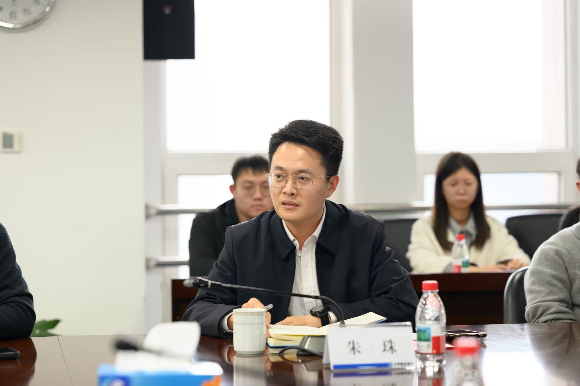 朱珠介绍了学院人才培养特色,以及近年学生升学就业的整体情况。他特别感谢建设银行长期以来为我院学生提供的优质实习实践与就业平台,并表示,学院始终将学生就业工作摆在突出位置,坚持价值引领与实践育人双轮驱动。他期待双方进一步拓展合作广度与深度,围绕课程共建、实习实训、联合科研、竞赛孵化等维度持续发力,推动更多金融学子走近国有大行、洞察行业前沿、提升专业素养。