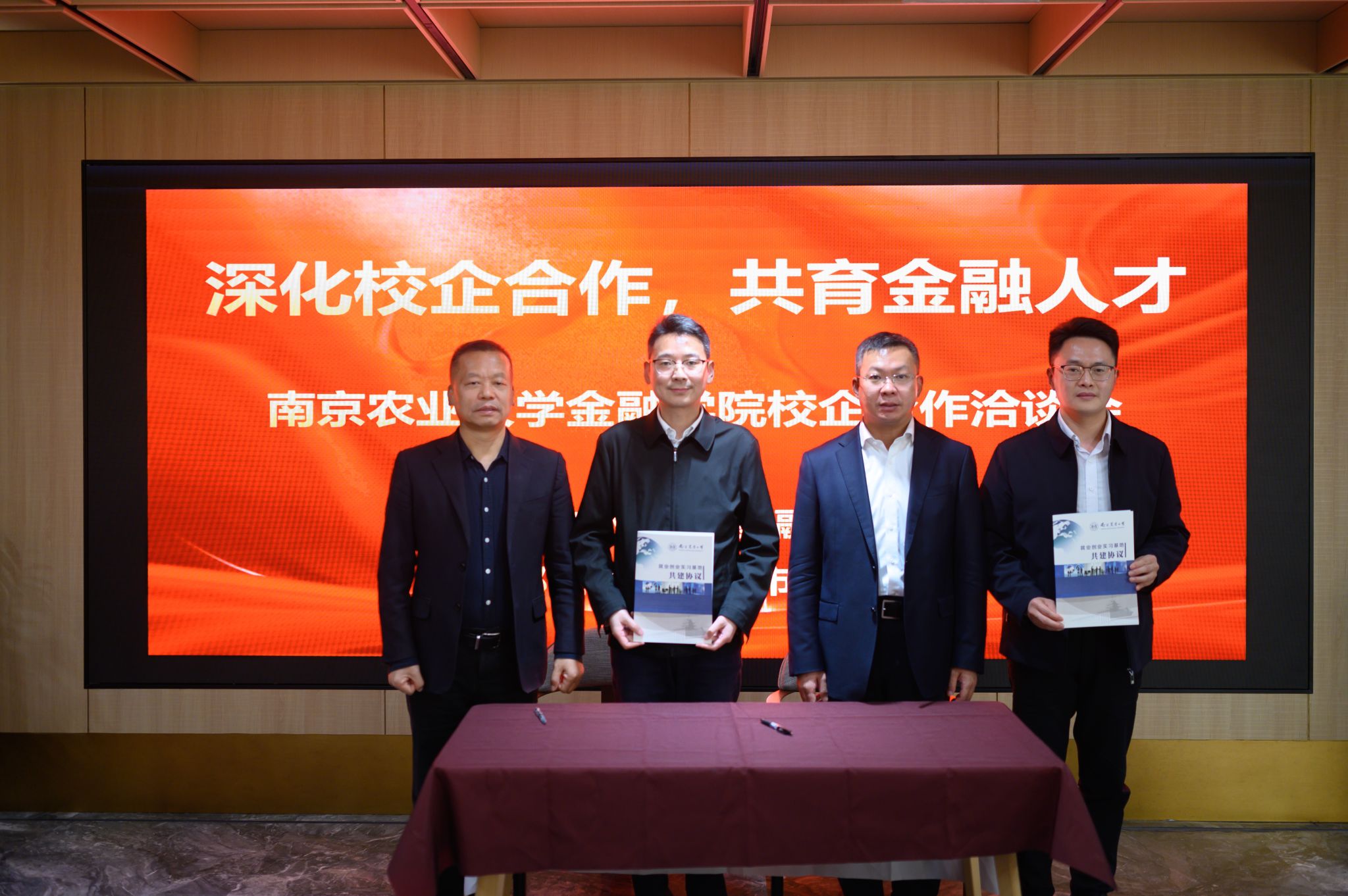张龙耀代表学院致辞,详细介绍南京农业大学的办学底蕴、学科特色与人才培养成果,重点阐述金融学院在学科建设上的育人成效,以及在“三农”农村金融、普惠金融领域的研究优势。他表示,学院始终致力于培养兼具专业素养与实践能力的复合型金融人才,期待双方以“就业创业实习基地”为纽带,在课程共建、实习实训、联合科研等方面持续深化合作,实现资源共享、协同育人,为江苏金融高质量发展输送更多高素质人才。