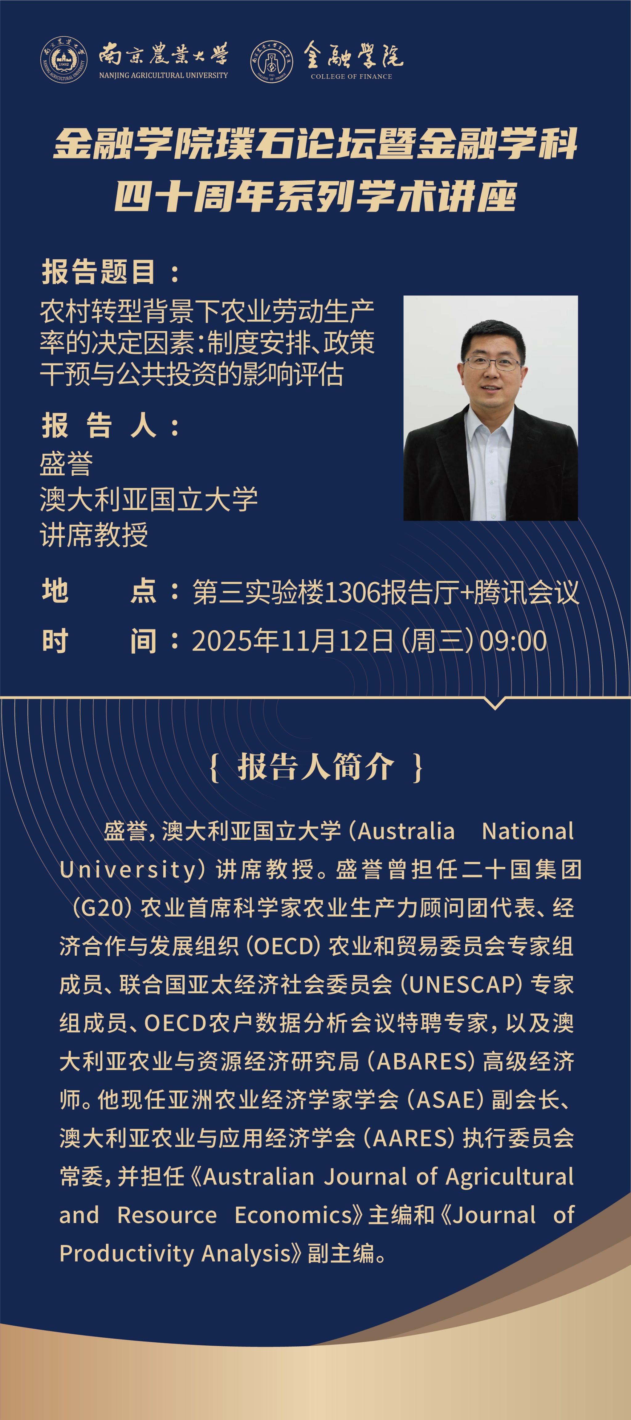 讲座预告(11.12)| 澳大利亚国立大学讲席教授盛誉学术报告