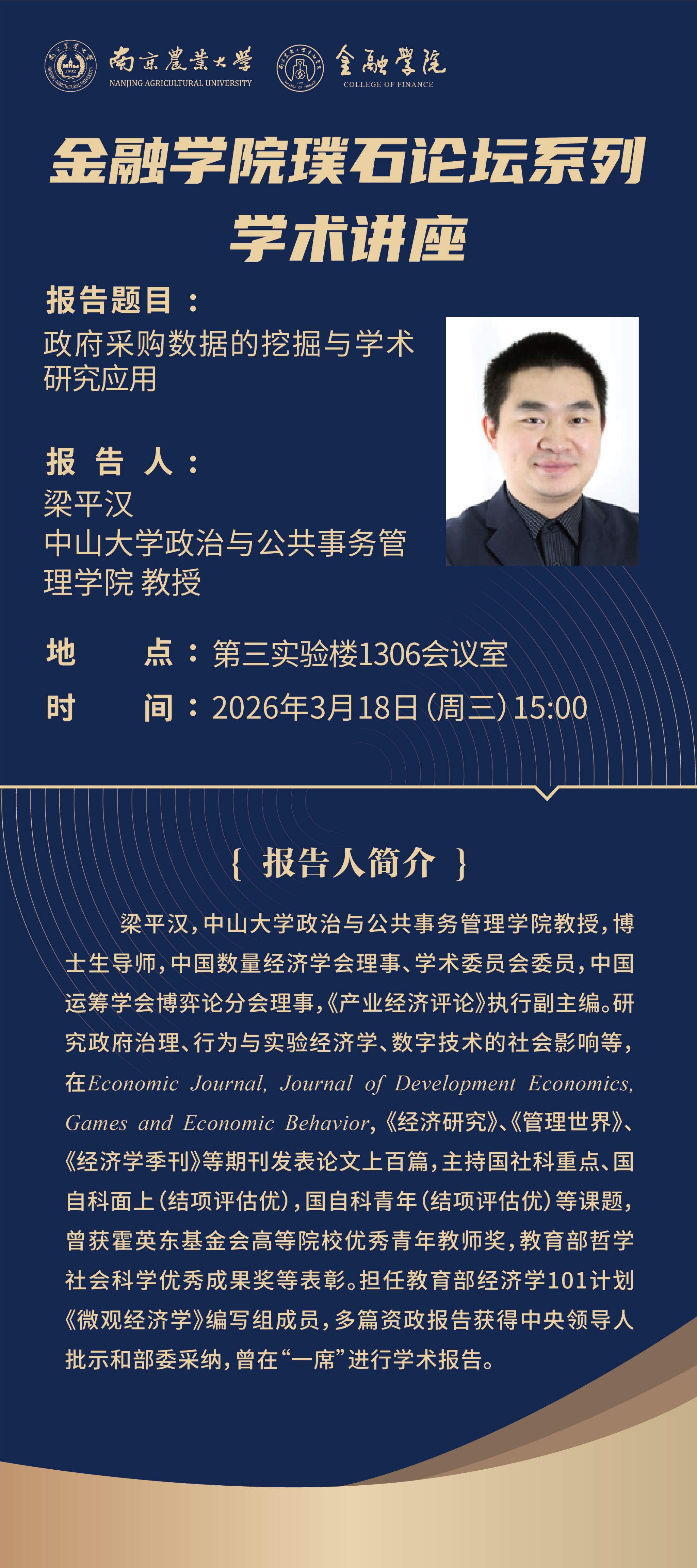 讲座预告(3.18)| 中山大学政治与公共事务管理学院教授梁平汉学术报告