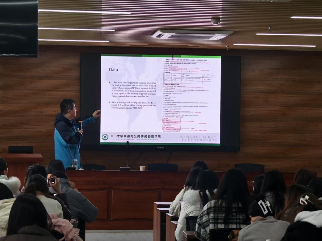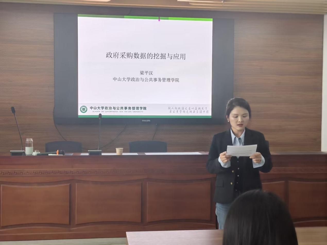 3月18日下午,中山大学政治与公共事务管理学院梁平汉教授受邀做题为《政府采购数据的挖掘与学术研究应用》的学术报告。报告由金融学院金融系系主任、刘丹副教授主持,学院百余名师生参加。